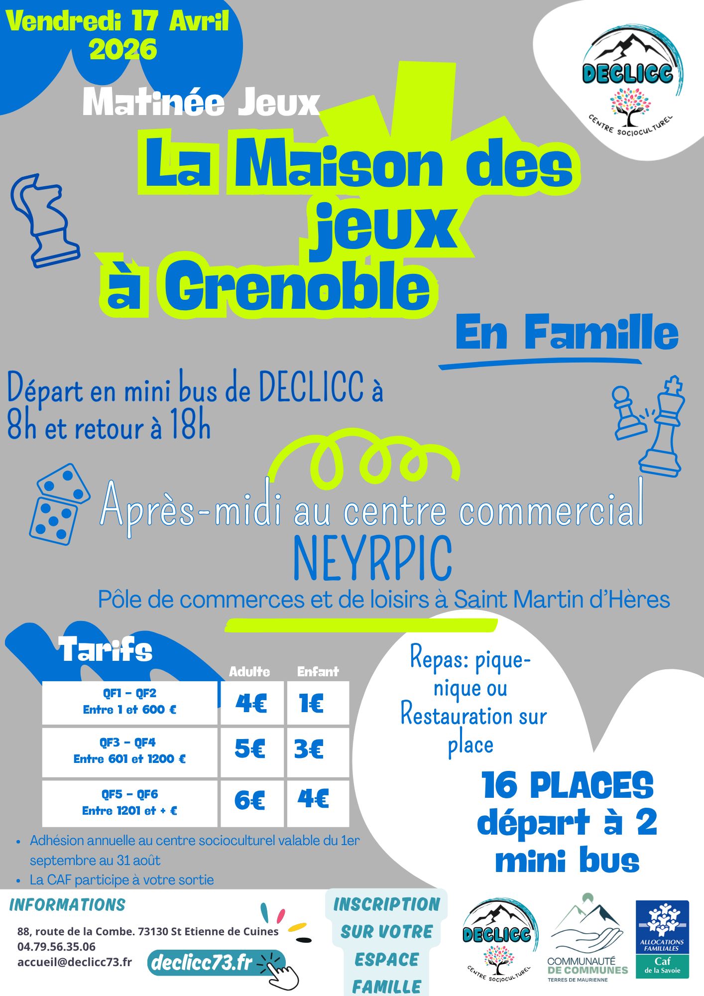 L’après‑midi se déroulera au centre commercial Neyrpic, un espace moderne et animé où chacun pourra flâner, se restaurer, explorer les boutiques ou simplement profiter de l’ambiance.